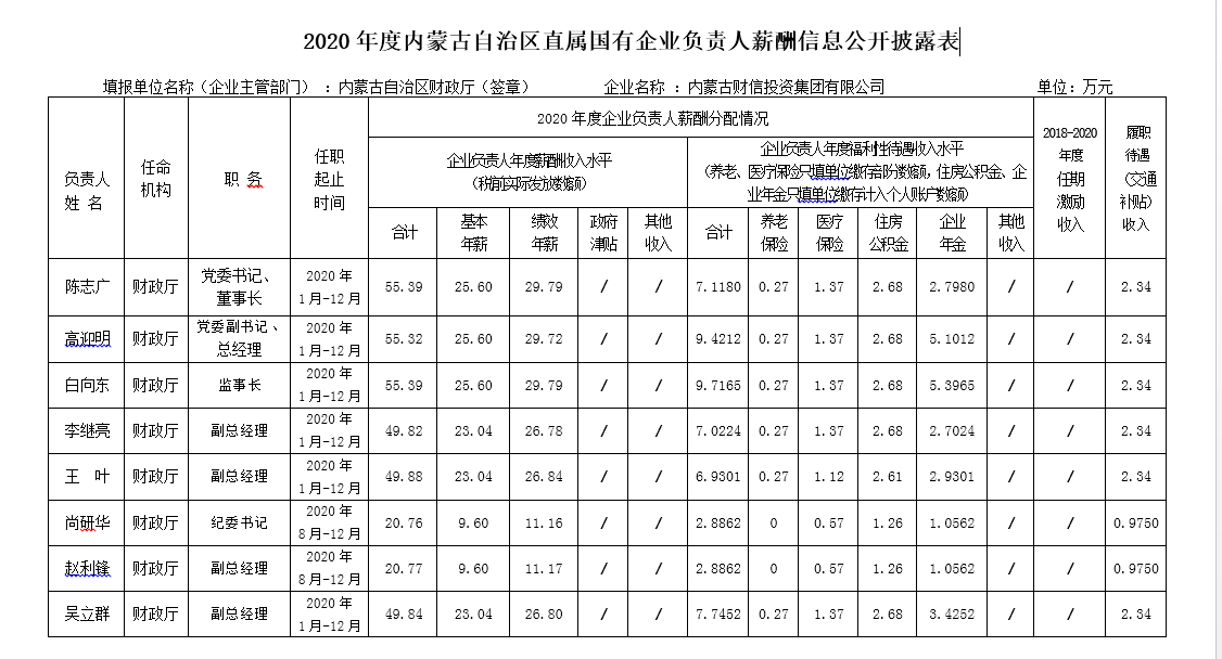 2020年度內(nèi)蒙古自治區(qū)直屬國(guó)有企業(yè)負(fù)責(zé)人薪酬信息公開(kāi)披露表