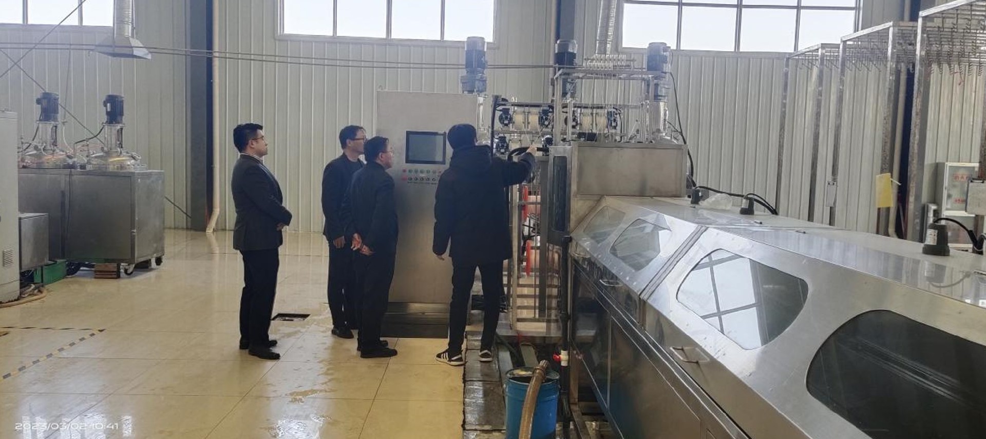 水發(fā)優(yōu)膜管理人員向孔令杰董事長介紹新紡絲設(shè)備運(yùn)行原理及運(yùn)行情況。
